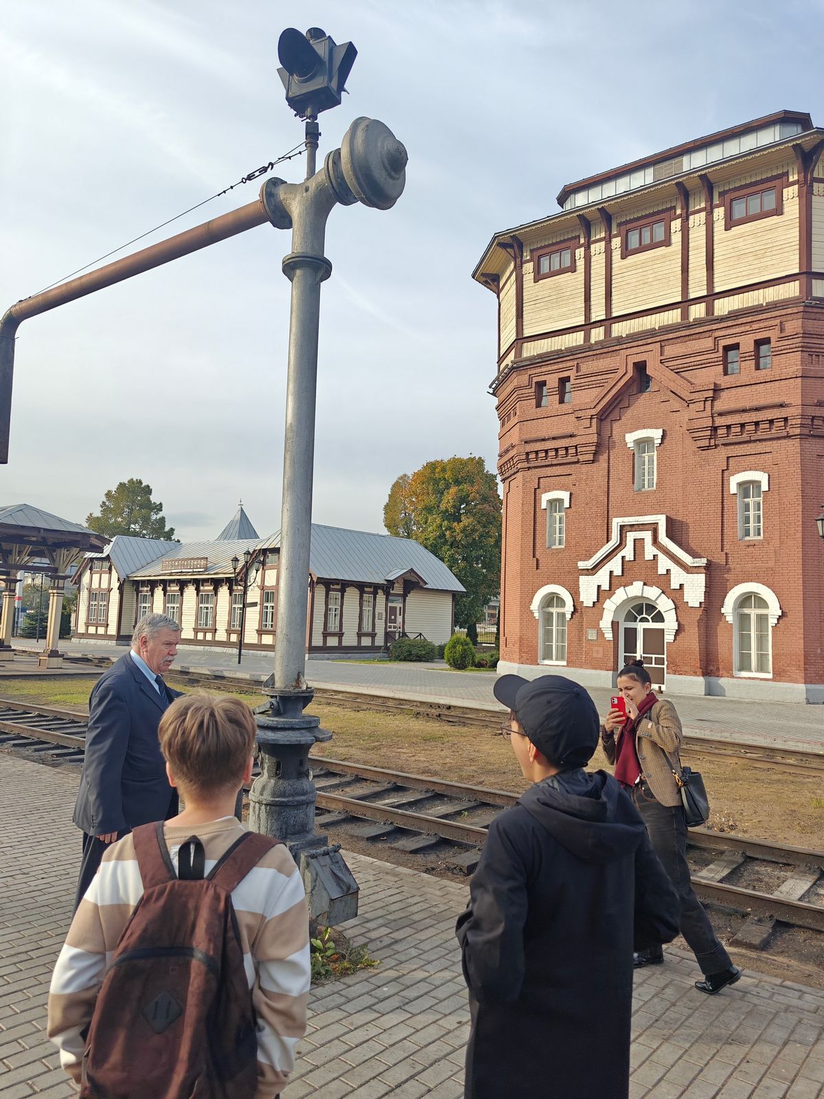 Не успели начаться первые в этом учебном году каникулы, как ребята из 7 Б класса вместе с классным руководителем Власовой Наталией Викторовной совершили погружение в эпоху более чем столетней давности во время потрясающей экскурсии на станцию«Подмосковная». Это уникальный музейно-производственный комплекс под открытым небом, не имеющий аналогов в России. Музейная экспозиция здесь - чудом сохранившийся городок подлинных,прекрасно отреставрированных станционных зданий, который соседствует с действующими мастерскими по ремонту паровозов.Мы прогулялись по старинному деревянному вокзалу, посетили залы ожидания для пассажиров разных сословий, заглянули в железнодорожную кассу, станционный буфет и даже багажное отделение, познакомились с работой телеграфа.В доме начальника станции увидели рабочий кабинет и служебную квартиру железнодорожного служащего начала ХХ века, увидели домик стрелочника,поворотный круг для паровозов, депо, самый большой в мире паровоз, попавший в книгу рекордов Гиннесса и многое, многое другое. А еще мы прока